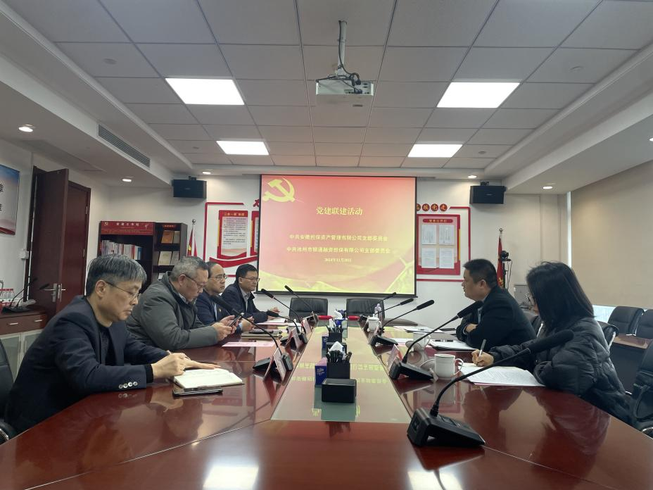 為深入貫徹學(xué)習(xí)黨的二十屆三中全會(huì)精神,進(jìn)一步創(chuàng)新黨建工作載體,充分發(fā)揮基層黨組織的核心引領(lǐng)作用,實(shí)現(xiàn)工作互動(dòng)和資源共享,全面促進(jìn)黨建與業(yè)務(wù)深度融合。11月20日,安徽擔(dān)保資產(chǎn)管理有限公司黨支部與池州市銀通融資擔(dān)保有限公司黨支部開展黨建聯(lián)建座談會(huì)。省擔(dān)保集團(tuán)合規(guī)總監(jiān)朱曉平,資管公司黨支部書記、董事長、總裁徐文卿,新興產(chǎn)投集團(tuán)黨委副書記、總經(jīng)理兼池州銀通擔(dān)保公司黨支部書記吳志剛及相關(guān)人員參加座談會(huì)。