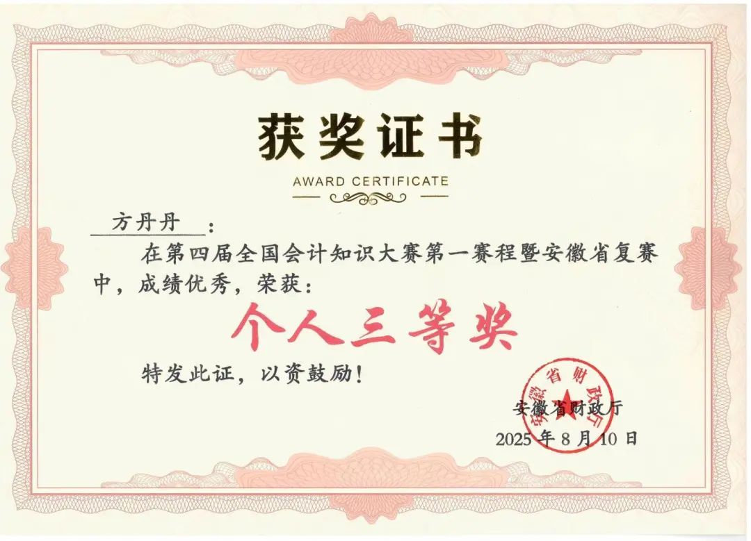 本次會(huì)計(jì)大賽由財(cái)政部主辦,內(nèi)容涵蓋政治理論知識(shí)、法律法規(guī)、會(huì)計(jì)實(shí)務(wù)、財(cái)務(wù)管理等內(nèi)容。在復(fù)賽中,方丹丹沉著應(yīng)對(duì)、穩(wěn)扎穩(wěn)打,以優(yōu)異的成績(jī)脫穎而出,充分展現(xiàn)出精湛的業(yè)務(wù)水平和昂揚(yáng)向上的精神風(fēng)貌。