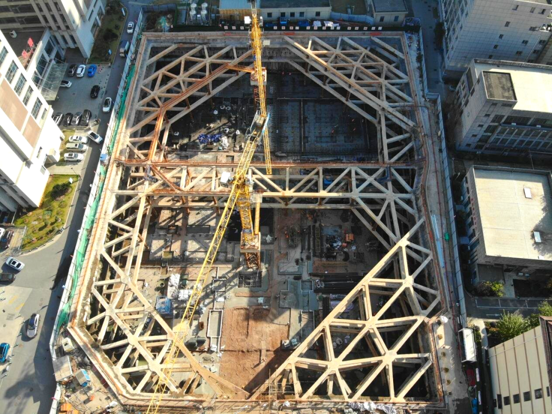 項目地處醫(yī)院內(nèi)部,施工環(huán)境復雜——場地狹小、周邊建筑密集、地下管線錯綜,且基坑深、地下水豐富,對支護安全與防滲漏要求極高。面對上述挑戰(zhàn),項目充分發(fā)揮臨時黨支部引領(lǐng)作用,聚焦EPC聯(lián)合體優(yōu)勢,聯(lián)合設(shè)計、監(jiān)測單位研讀地勘資料及規(guī)范,識別風險源并擬定專項方案;同時邀請專家及建設(shè)、監(jiān)理單位,圍繞支護設(shè)計、深基坑施工等關(guān)鍵環(huán)節(jié)多輪論證,攻克技術(shù)難題。