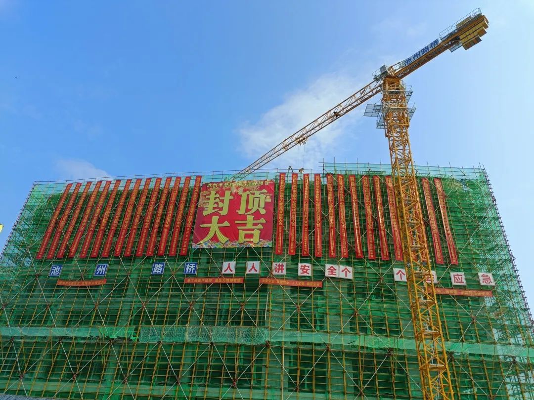 自2022年9月26日開工建設(shè)以來,建投集團組織精干隊伍,派駐優(yōu)秀技術(shù)骨干,投入先進機械設(shè)備,全力按高起點、高標(biāo)準(zhǔn)、嚴要求推進項目建設(shè)。于2022年底前完成了深基坑開挖及支護工程,為項目主體施工奠定了安全、堅實的基礎(chǔ)。主體結(jié)構(gòu)施工中采用大跨度、高支模及后張法預(yù)應(yīng)力梁工藝,秉承“安全第一、預(yù)防為主、綜合治理”的安全生產(chǎn)方針,堅持安全是根本、質(zhì)量是生命的發(fā)展理念,全力推動項目建設(shè),克服困難,承壓奮進。最終歷時10個月,于2023年8月6日圓滿完成主體結(jié)構(gòu)封頂。
