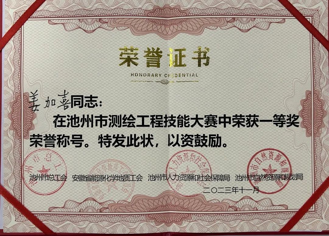 日前,池州市首屆測繪工程技能大賽圓滿落幕,全市22家測繪單位的15支隊伍以及20余名個人賽選手參加。最終,集團所屬池州市規(guī)劃勘測設(shè)計總院有限公司在此次技能大賽獲得團體總成績第一、個人成績第一的佳績。