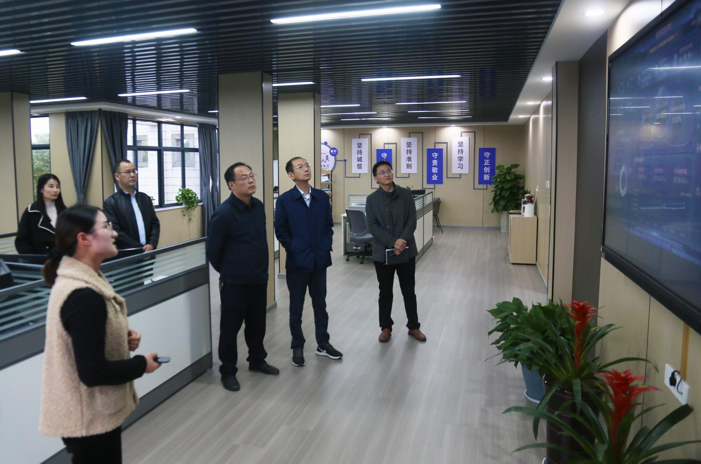 隨后,汪偉一行來(lái)到辦公大廳觀看智能運(yùn)營(yíng)分析大屏及財(cái)務(wù)RPA機(jī)器人自動(dòng)對(duì)賬演示,了解了財(cái)務(wù)共享運(yùn)營(yíng)在線監(jiān)測(cè)、財(cái)務(wù)綜合分析、預(yù)算指標(biāo)實(shí)時(shí)監(jiān)控等情況。