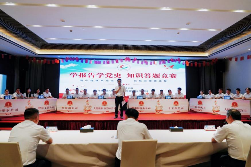 為慶祝中國(guó)共產(chǎn)黨成立102周年,深入學(xué)習(xí)宣傳貫徹黨的二十大精神和習(xí)近平新時(shí)代中國(guó)特色社會(huì)主義思想,持續(xù)推動(dòng)黨史學(xué)習(xí)教育走深走實(shí),6月19日,文旅集團(tuán)黨委組織開展迎“七一”慶建黨102周年知識(shí)競(jìng)賽活動(dòng)。黨委委員、副總經(jīng)理章明到場(chǎng)致辭。文旅集團(tuán)黨委所屬各單位8支隊(duì)伍24名參賽選手參加競(jìng)賽。