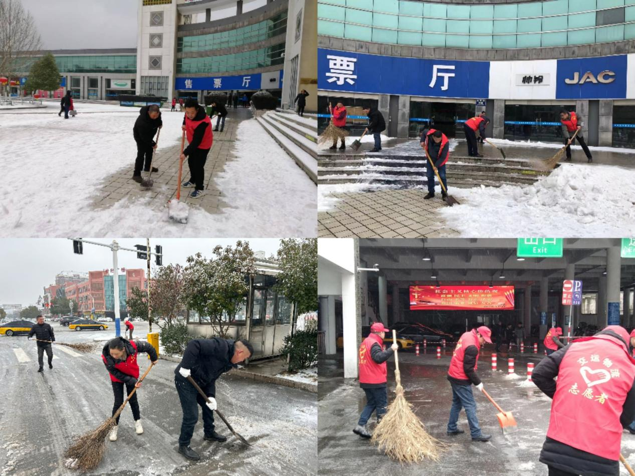 在池州的城市主干道、交通站場的周邊、公交站臺以及首末站有這樣一群身影,他們顧不上欣賞眼前難得一見的雪景,個個身披紅馬褂、有的胸前還佩戴黨徽,他們時而用鐵鍬在鏟、時而用掃帚在清理,他們整齊劃一都有一個共同的目標(biāo),就是盡快將路面積雪清除干凈。