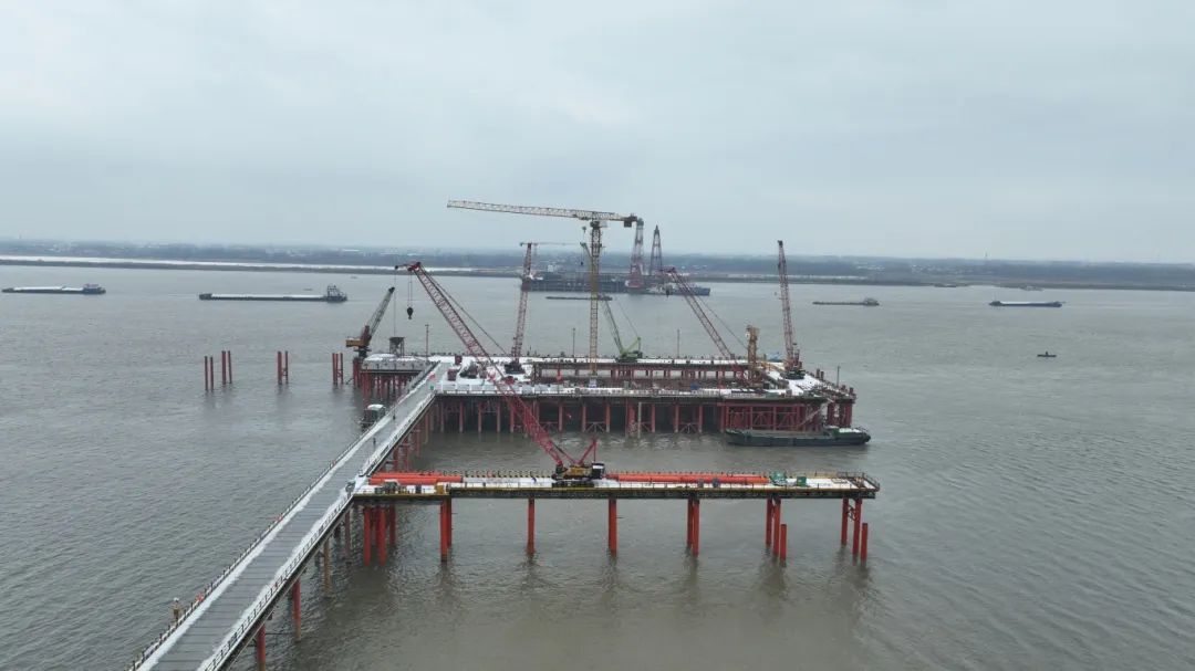春節(jié)過后,池州港烏沙港區(qū)公用碼頭項目施工人員以時不我待的精神,鉚足干勁抓緊度、忙生產(chǎn),確保施工現(xiàn)場有序推進。截至目前,該項目水域部分碼頭平臺面層、兩座汽車引橋已全部澆筑完成,項目整體進度已完成約82%,碼頭工程主體結(jié)構(gòu)與房建工程主體結(jié)構(gòu)已全部施工完成,目前正在進行碼頭前沿鋼結(jié)構(gòu)安裝、房建工程裝飾裝修、鋼引橋吊裝、水電安裝等施工作業(yè)。同時碼頭陸域部分已完成招標(biāo)工作,目前正在進行開工籌備工作。