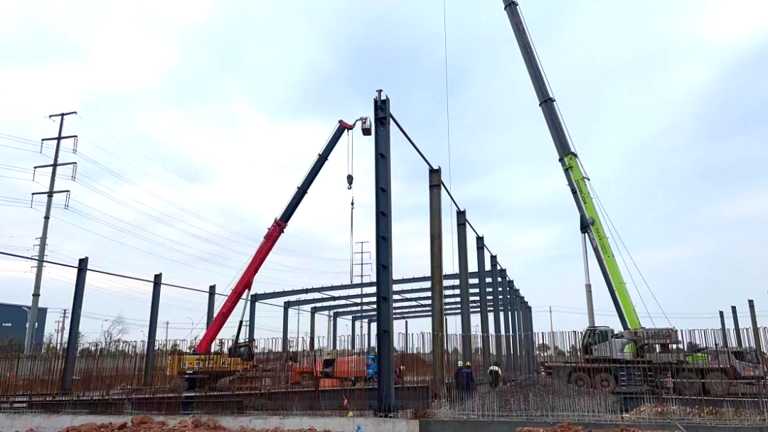 公用型保稅倉庫項目于2023年12月初正式開工建設(shè),項目建成后主要提供各種有色金屬及大宗散貨礦產(chǎn)品的倉儲,報關(guān),報檢,報稅及物流配送等服務(wù)。復(fù)工以來,全體工作人員精神飽滿,拿出了開工即決戰(zhàn)、起步即沖刺的精神狀態(tài)投入到項目施工中。目前保稅倉庫鋼結(jié)構(gòu)鋼柱鋼梁已搭設(shè)完成,其附屬設(shè)施中制樣間、地磅棚、沉淀池基礎(chǔ)筏板等基礎(chǔ)設(shè)施已基本完成。商發(fā)公司將掛圖作戰(zhàn)、打表推進公用型保稅倉庫項目建設(shè),確保項目早建成、早投運、早見效。