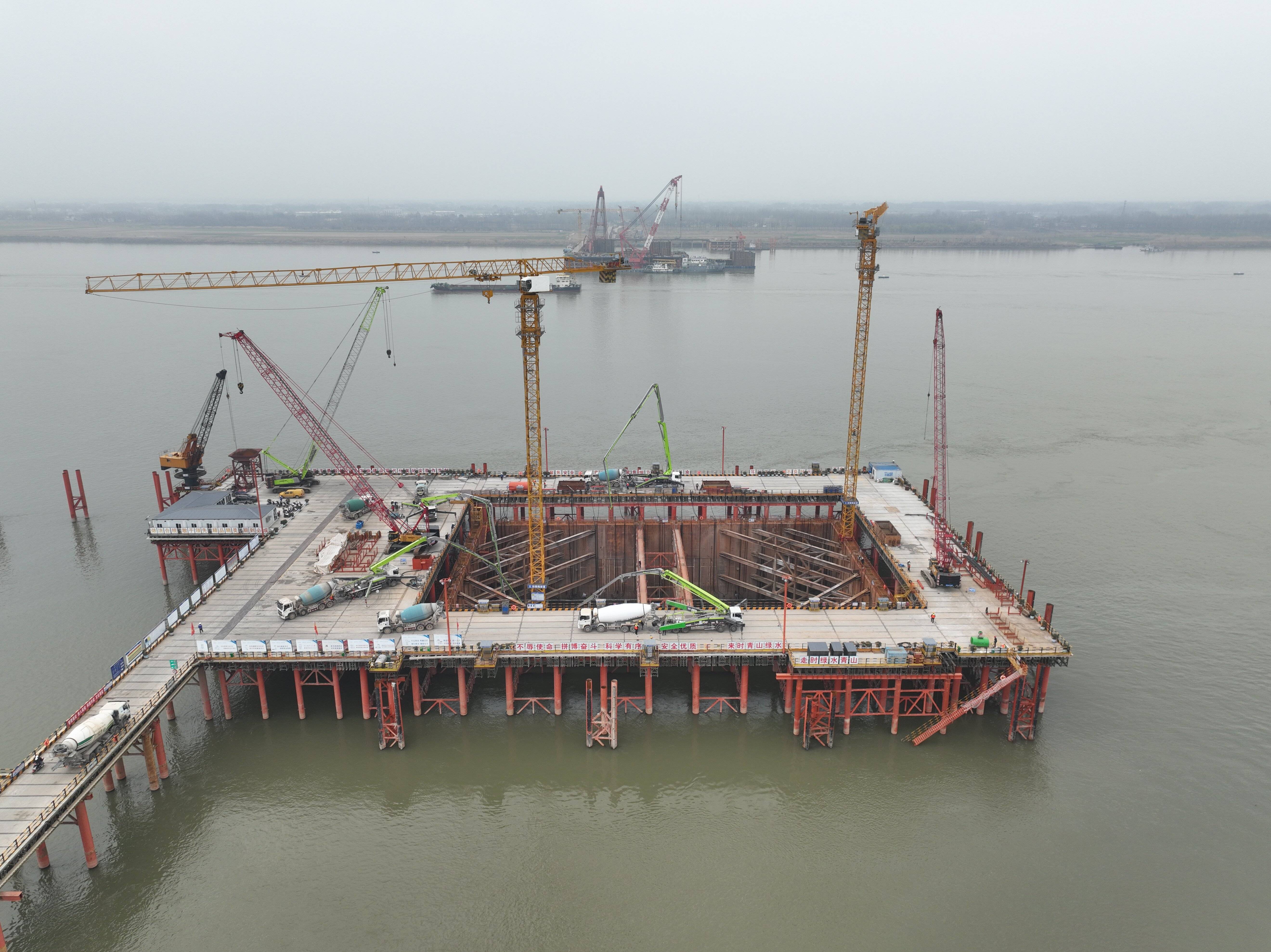本次4號墩承臺鋼筋安裝施工作業(yè)恰逢春節(jié)期間,為確保春節(jié)假期后快速掀起施工熱潮,項目施工單位超前謀劃、提前組織,在春節(jié)放假前便完成了施工資源的協(xié)調組織工作,春節(jié)假期結束后立即組織人員、機械、物資進場施工。本次4號主墩承臺首次順利澆筑,為新的一年池州長江公鐵大橋建設開了一個好頭,向完成汛期前墩身出水的既定目標邁出了堅實的一步。